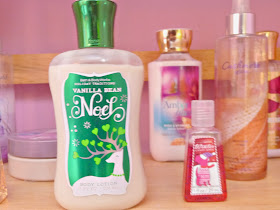 On the second shelf I keep all of my in season body butters, perfumes, body sprays, and lotions. It makes it easier for me to pick out a scent in the morning if it is right next to me. Also, since I only keep out in season scents out I won't have to sort through an insane amount of them to find the one I want to wear.